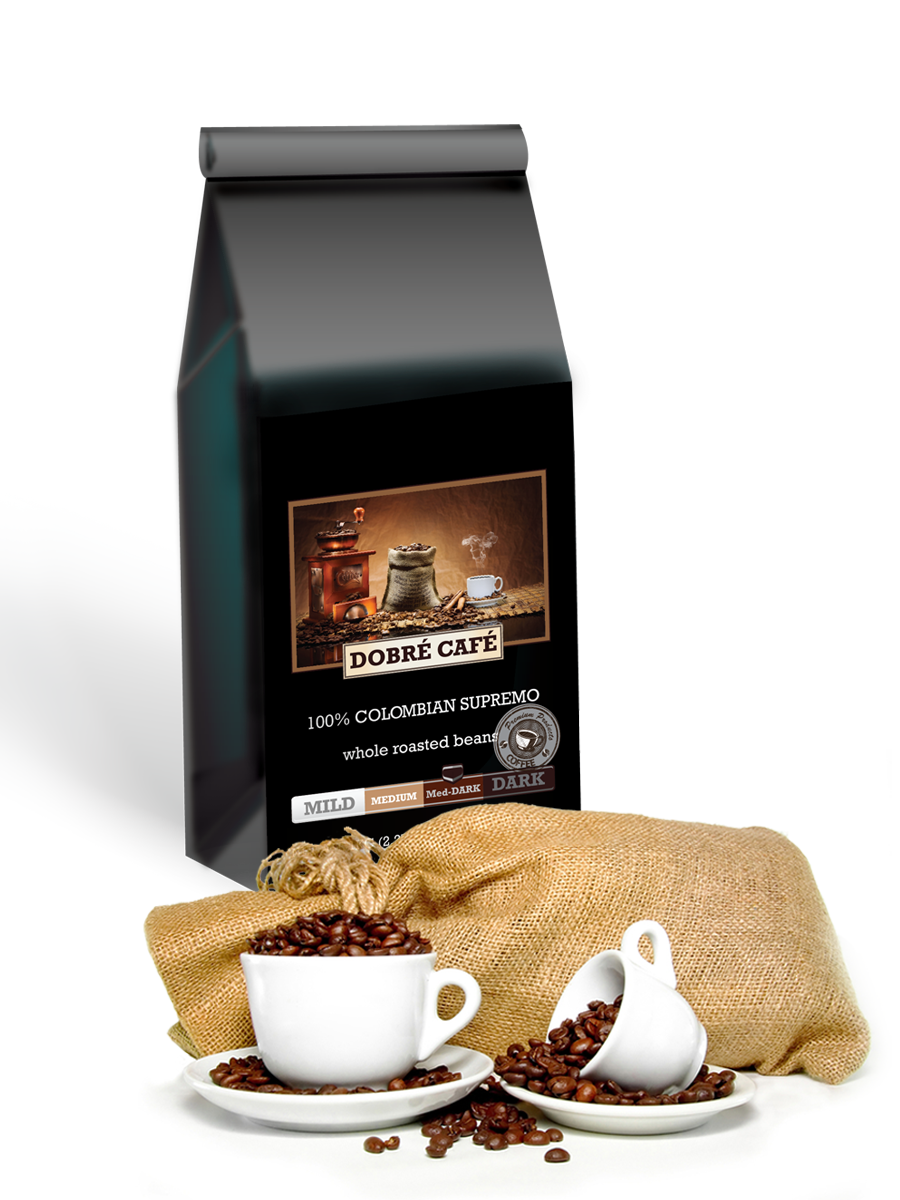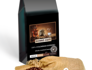 These high altitude Arabica coffee beans are the premium coffee of Colombia. Dobré Café Colombian Supremo is a balanced well-rounded coffee that yields full body, light to medium acidity, rich flavor, and wonderful aroma. Colombian Supremo brews a pleasant cup of coffee to enjoy any time of the day.